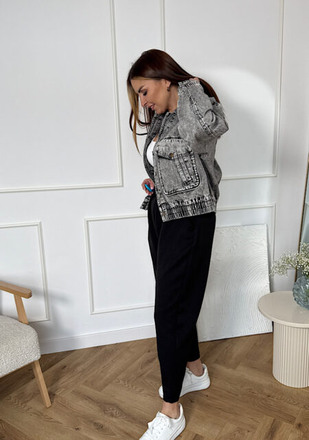 Stylowa kurtka jeansowa o modnym, lekko luźnym kroju, która świetnie dopełni zarówno casualowe, jak i sportowe stylizacje. Idealna do dresów, spodni materiałowych czy sukienek. Elastyczne wykończenie na dole pięknie dopasowuje się do sylwetki, a klasyczne zapięcie na guziki dodaje jej ponadczasowego charakteru. Model dostępny w dwóch kolorach jeansu oraz wersji szarej, dzięki czemu łatwo dopasujesz…