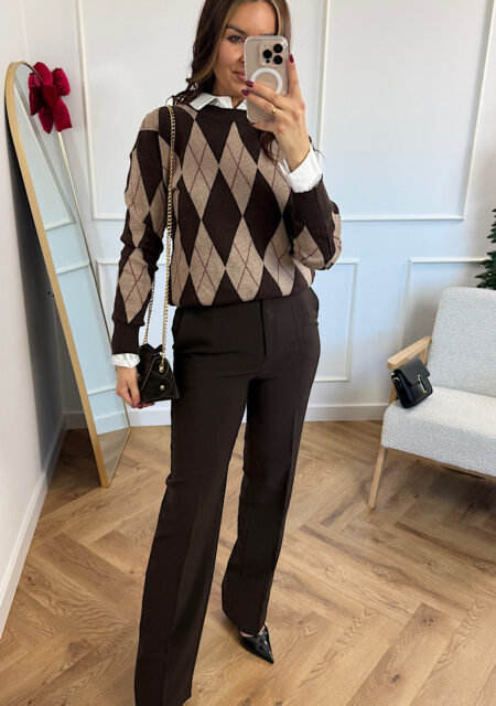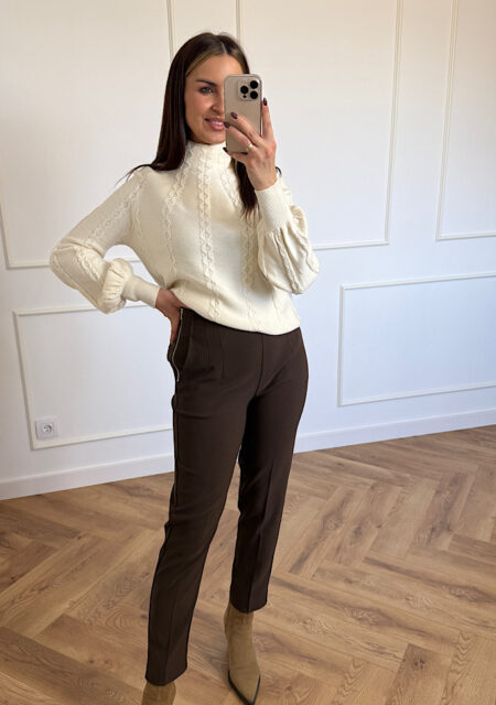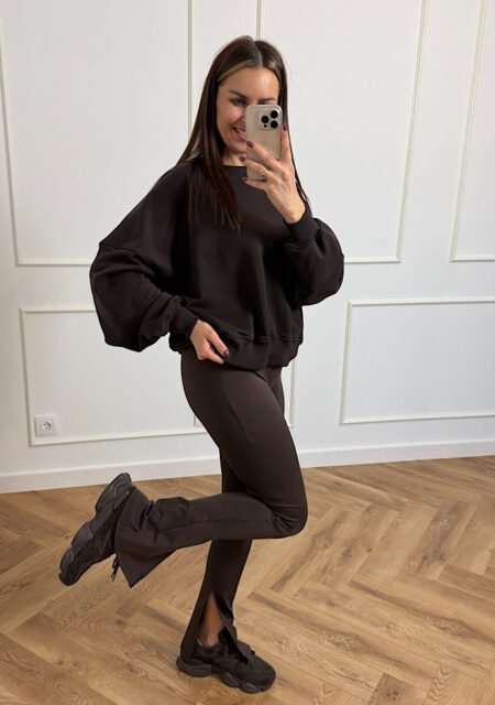 Stylowe cygaretki w odcieniu głębokiej czekolady to idealna baza wielu eleganckich stylizacji. Wykonane z przyjemnego, lekko elastycznego materiału – pięknie układają się na sylwetce i zapewniają komfort przez cały dzień. Spodnie zapinane są z boku na złoty zamek, który dodaje im subtelnej elegancji. Z tyłu w pasie wszyta została gumka, dzięki czemu spodnie doskonale dopasowują…