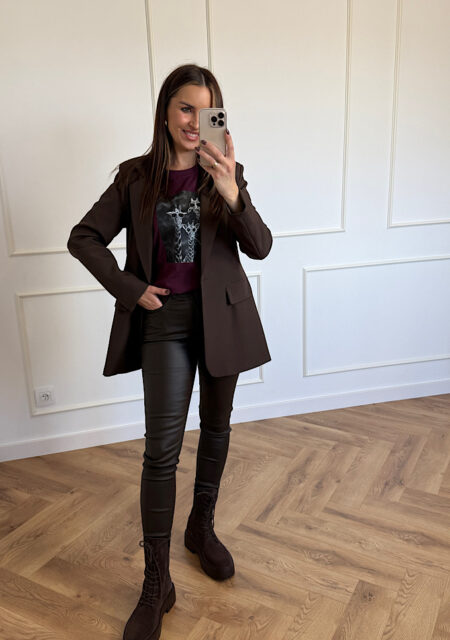 Ten komplet to absolutna perełka dla kobiet, które kochają elegancję z nutą wyjątkowości. Garnitur składa się z szykownej marynarki oraz spodni o prostym, wydłużającym nogi kroju. Intensywny burgund dodaje klasy, a trójwymiarowa aplikacja róży na ramieniu sprawia, że całość wygląda niezwykle modnie i efektownie. Marynarka: taliowana, wiązana paskiem, pięknie podkreśla sylwetkę, dekoracyjna róża na ramieniu…