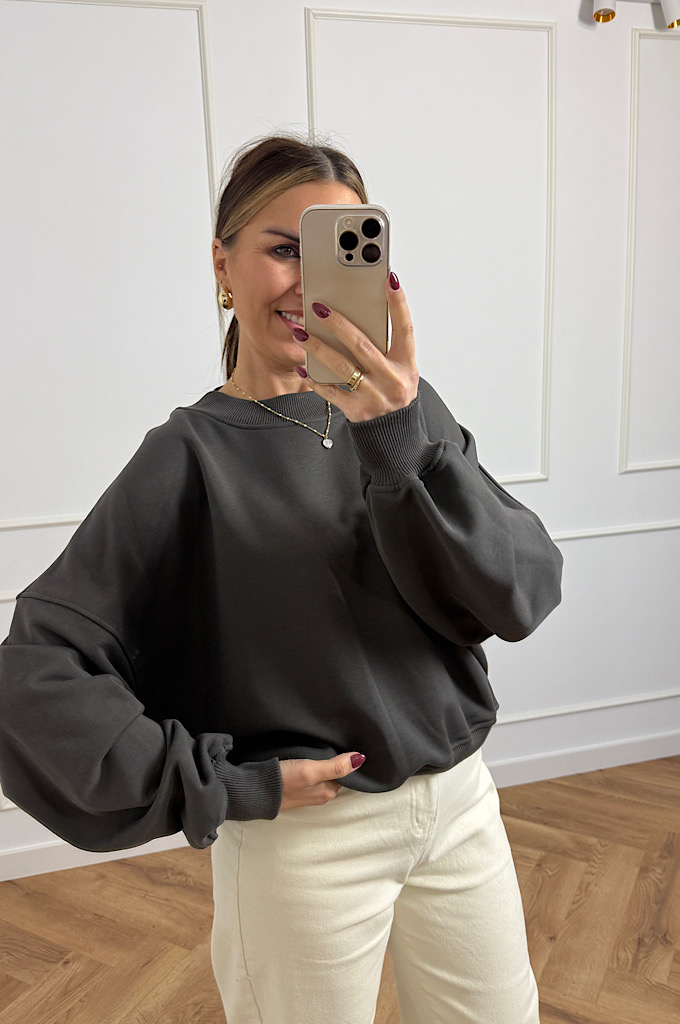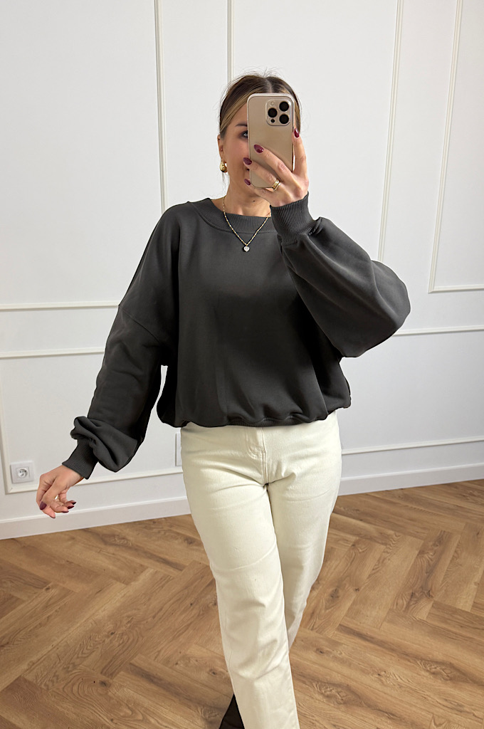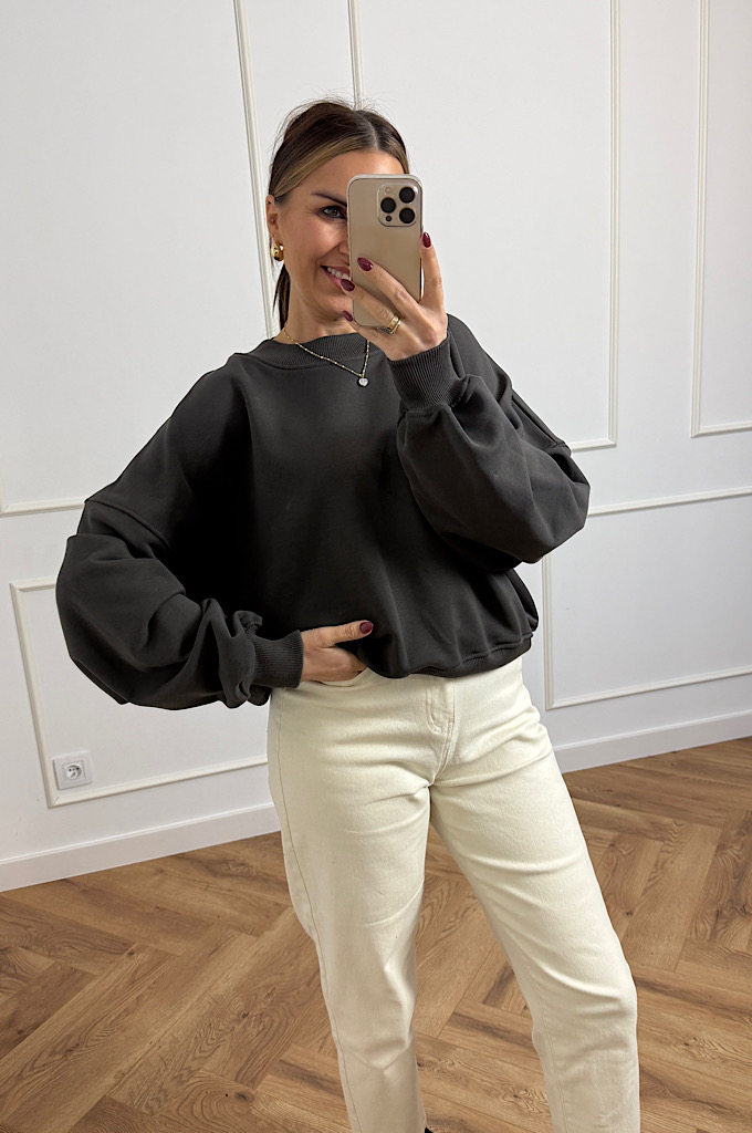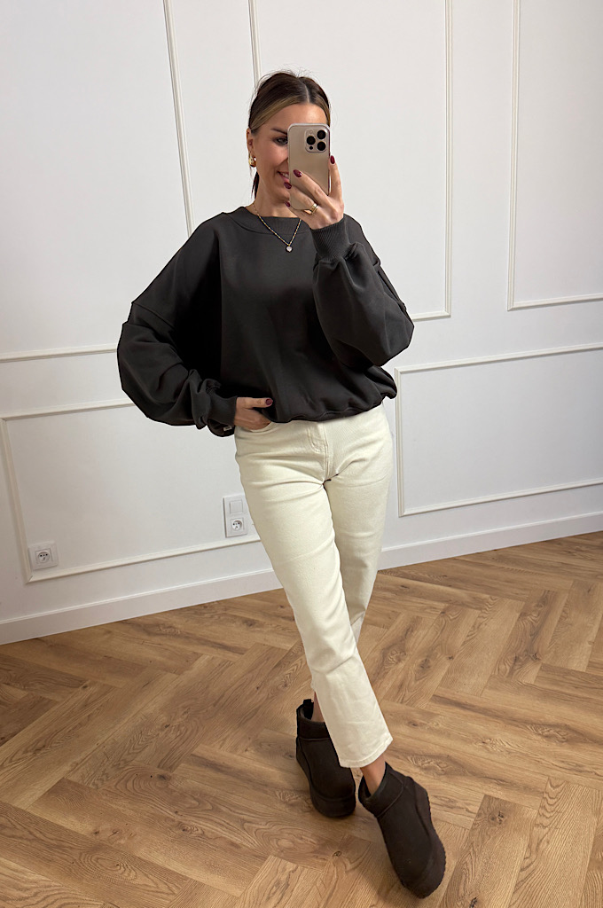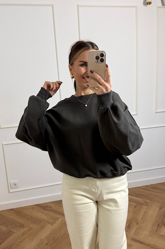 Bluza oversize krótka ciemna gorzka czekolada Nosi