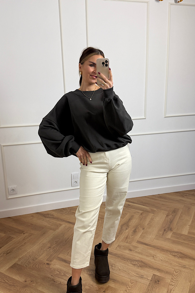 Typ lekko  oversize krótka, wykonana z wysokiej jakości- mięsistej pętelkowej ciepłej bawełny. Modny krój, lekko opuszczony rękaw oraz dół bluzy wykończone ściągaczem.Najmodniejszy krój i kolor tego sezonu. Polecam! Kolory obłędne!