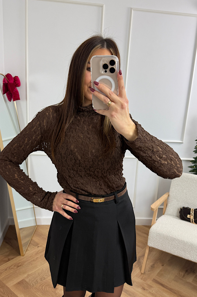 Bluzka koronkowa półgolf czekolada