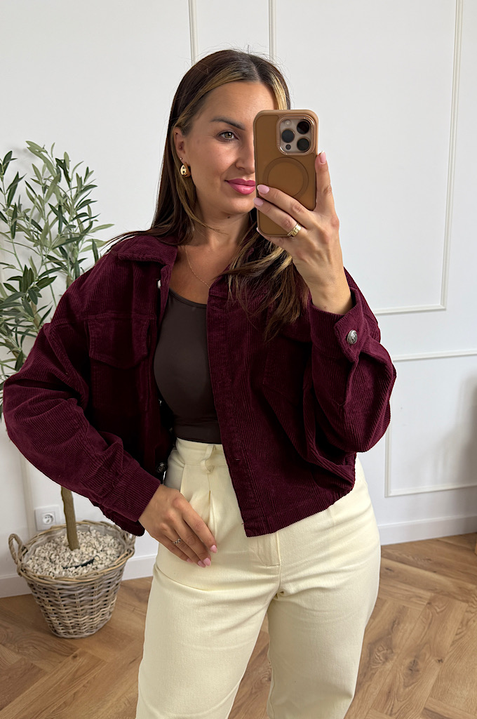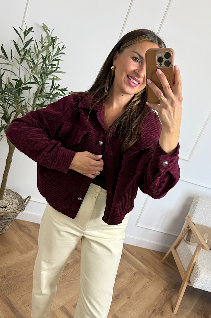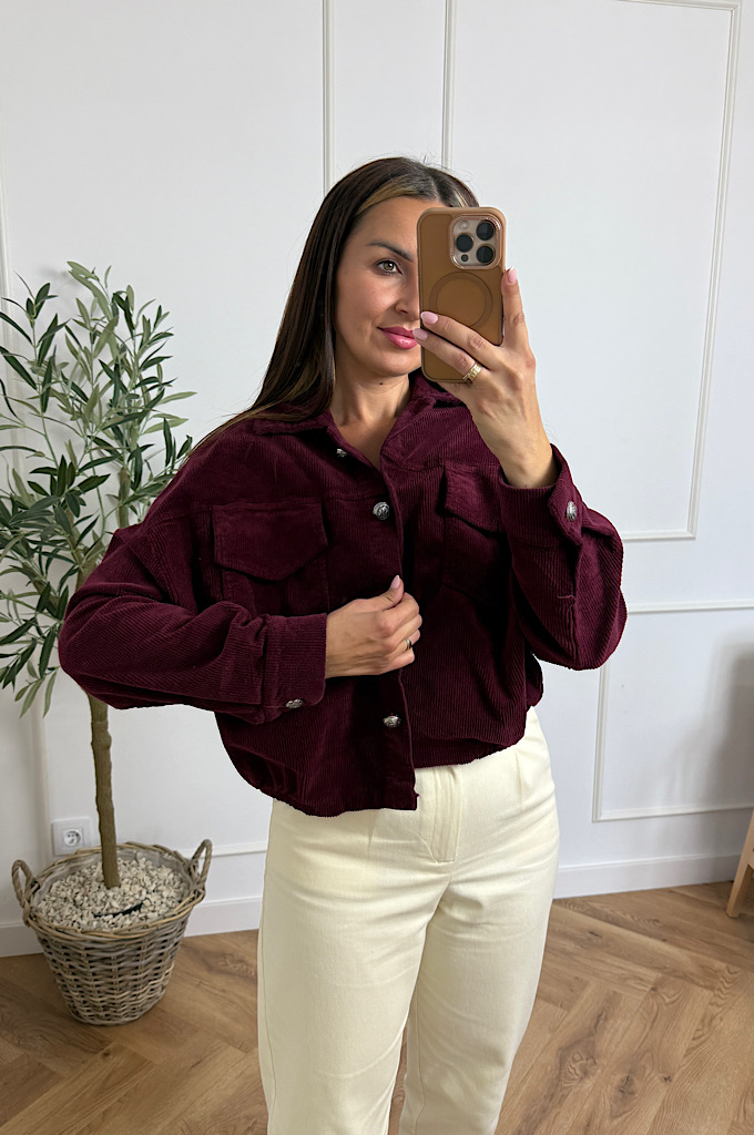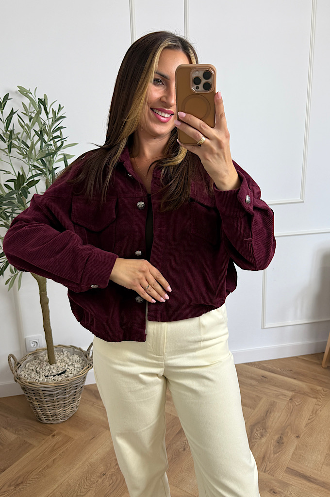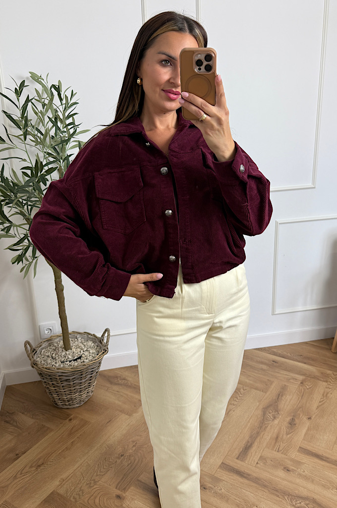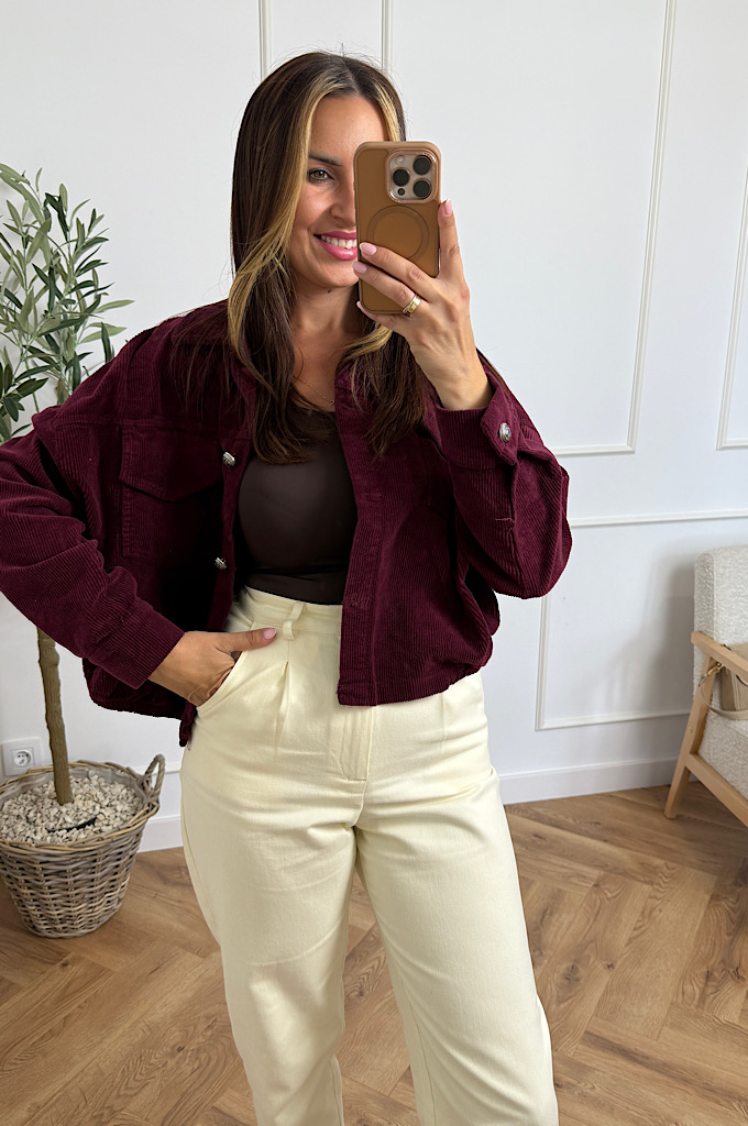 Kurtka wykonana z miękkiego sztruksu, idealna na chłodniejsze dni. Model zapinany na guziki, z klasycznym kołnierzykiem oraz dwoma kieszeniami na piersi dodającymi jej casualowego charakteru. Luźny fason z regulowanym ściągaczem w dolnej części pozwala dopasować sylwetkę i nadaje całości modnego, nonszalanckiego looku. Świetnie sprawdzi się w połączeniu z jeansami, spodniami materiałowymi czy sukienką dla kontrastu faktur.
