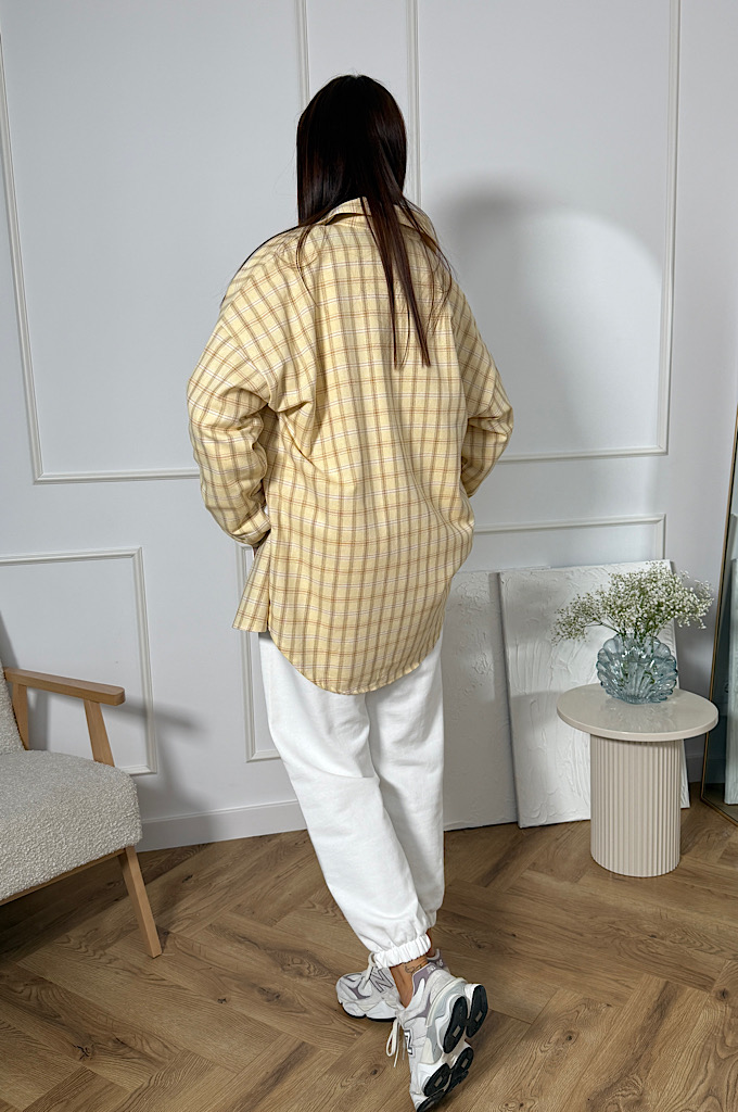 Koszula krata z bawełną oversize cytryna