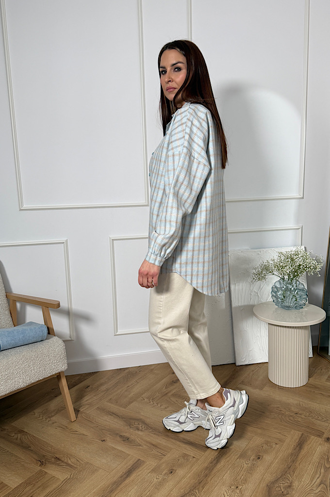 Koszula oversize w kratę wykonana z wysokiej jakości tkaniny zawierającej 80% bawełny, która zapewnia komfort noszenia i dobrą przewiewność przez cały dzień. Luźny, oversizowy krój pięknie układa się na sylwetce, dając swobodę ruchów i modny, nonszalancki efekt.