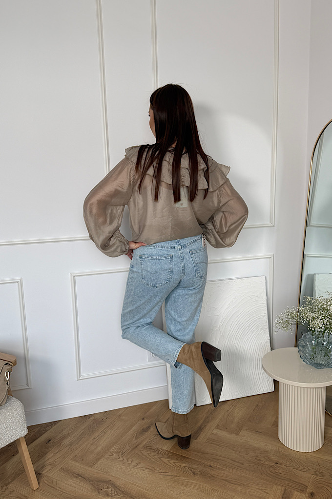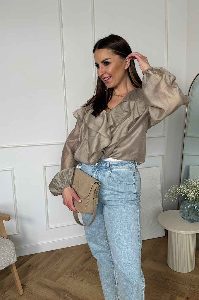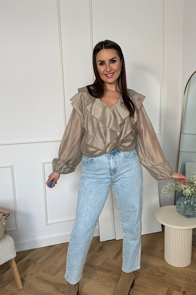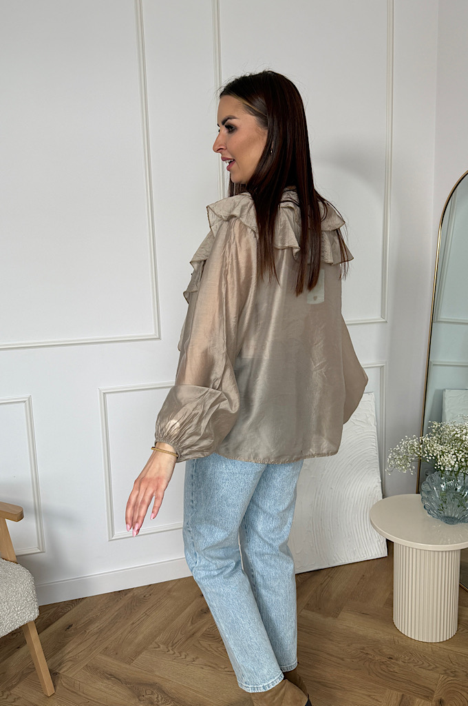 Koszula z falbanami z wiskozą mgiełka beż