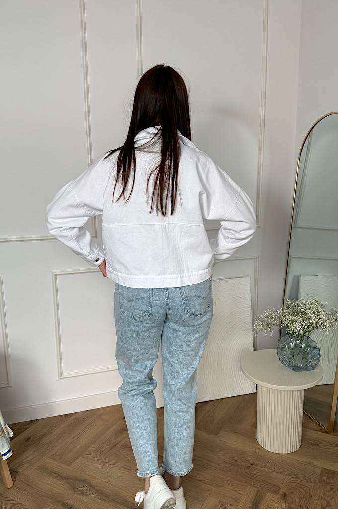 Stylowa kurtka jeansowa o uniwersalnym fasonie, która idealnie sprawdzi się w codziennych stylizacjach. Klasyczny krój z kieszeniami i zapięciem na guziki czyni ją ponadczasowym elementem garderoby – pasuje zarówno do jeansów, spodni materiałowych, jak i sukienek czy dresów.
