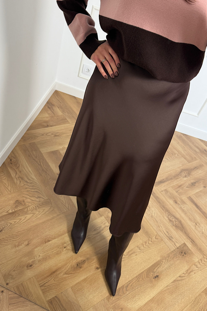 Spódnica satynowa z wiskozy czekolada