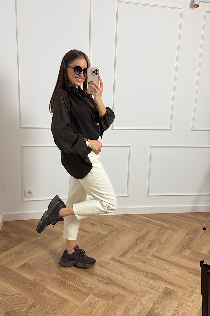 2. Luźny fason – szerokie nogawki w górnej części, które przechodzą w węższy dół. Ten krój pozwala na swobodę ruchów, a zarazem jest bardzo modny.
