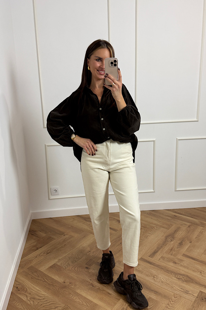 Taki fason świetnie podkreśla talię, ukrywając przy tym ewentualne mankamenty w okolicy bioder i ud, a dzięki zwężeniu nogawek optycznie wysmukla nogi. Idealnie pasują do oversize’owych gór, topów lub marynarek. Są wygodne i nadają się do wielu różnych stylizacji.