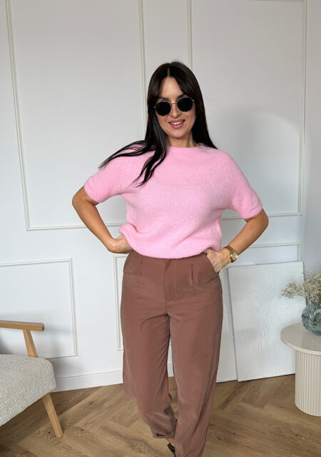 Hania ma 166 cm wzrostu, na co dzień nosi rozmiar S/M, prezentuje na sobie spodnie w rozmiarze 36.