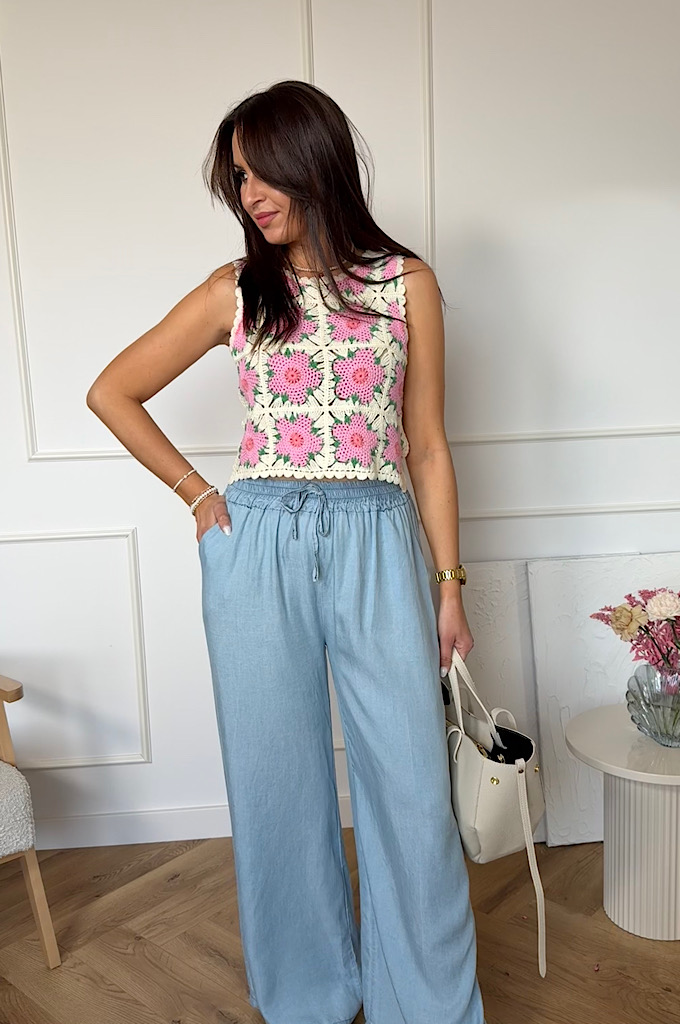 Spodnie szerokie tencel jasny jeans