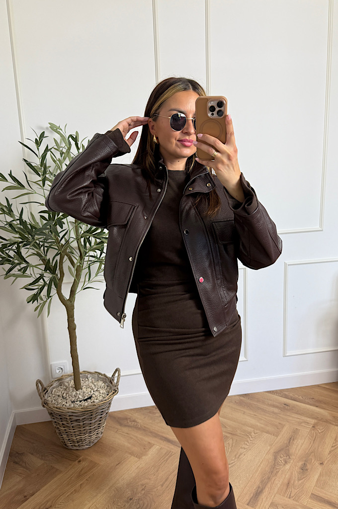 Sukienka dzianinowa mini Isabel premium czekolada