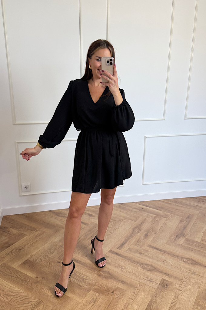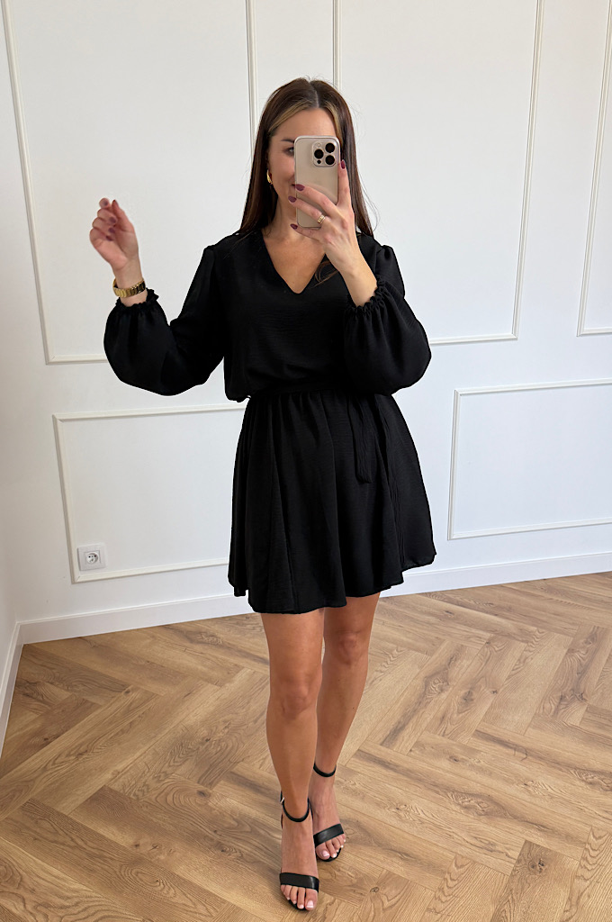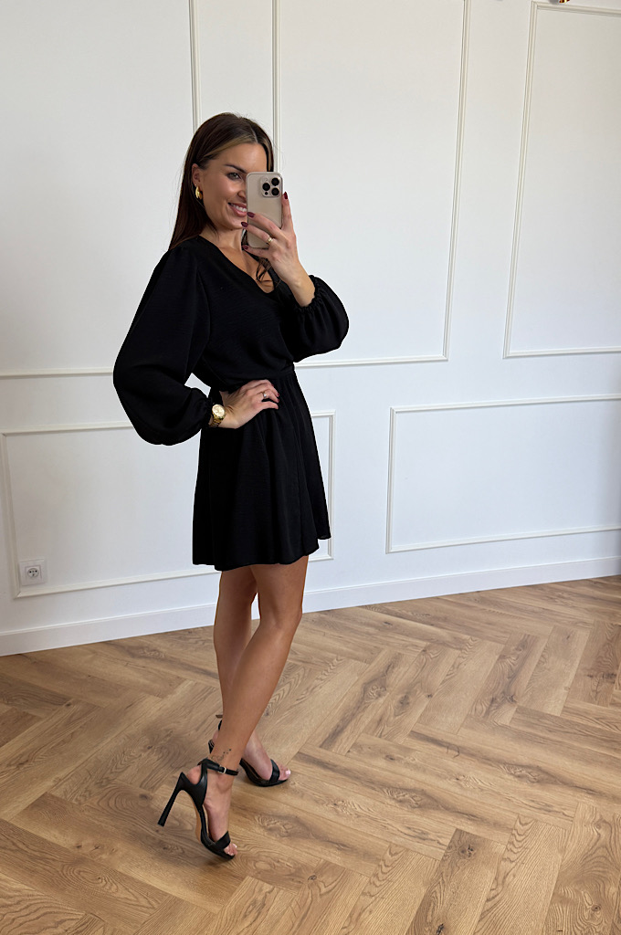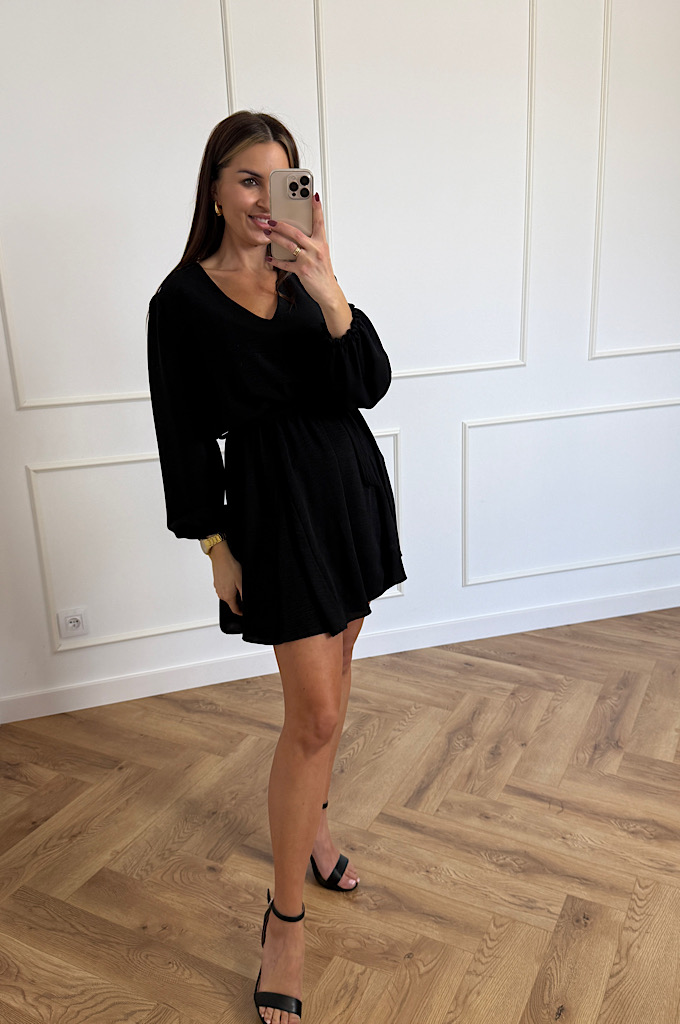 Sukienka w rozmiarze uniwersalnym. Świetnie się sprawdzi dla kobiet w ciąży. Będzie dobra na wiele rozmiarów od XS do XL. Biust w literę V. W pasie gumka, dodatkowo pasek do związania. Rękawek zakończony gumką.