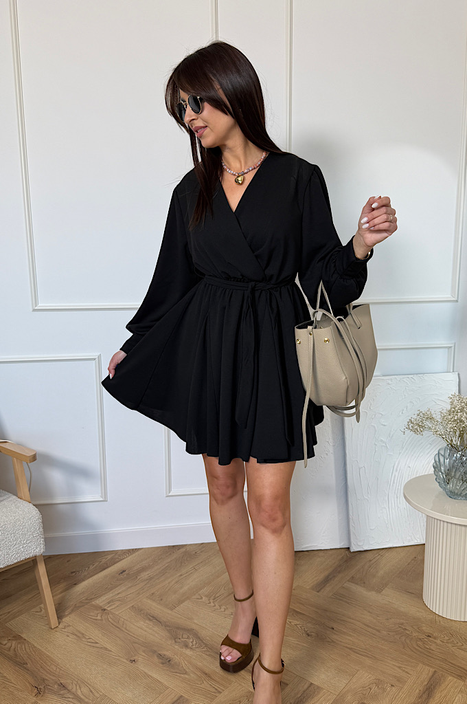 Sukienka w rozmiarze uniwersalnym. Świetnie się sprawdzi dla kobiet w ciąży. Będzie dobra na wiele rozmiarów od XS do XL. Biust przekładany kopertowo. W pasie gumka, dodatkowo pasek do związania. Rękawek zakończony gumką.