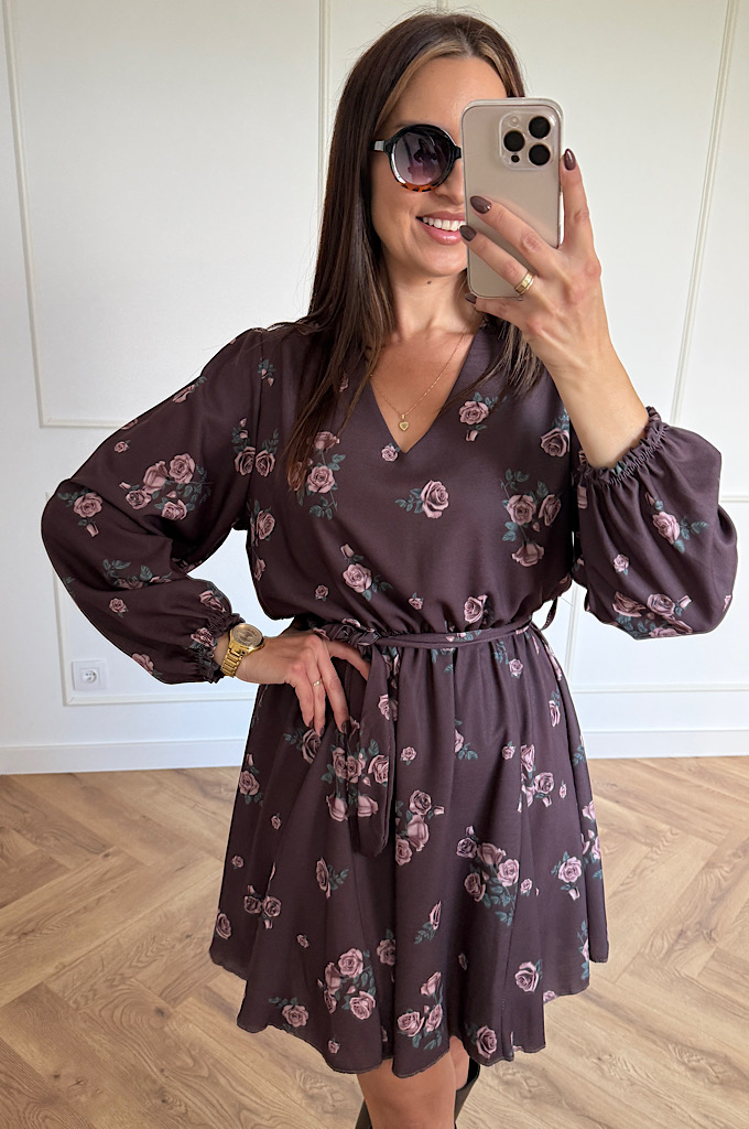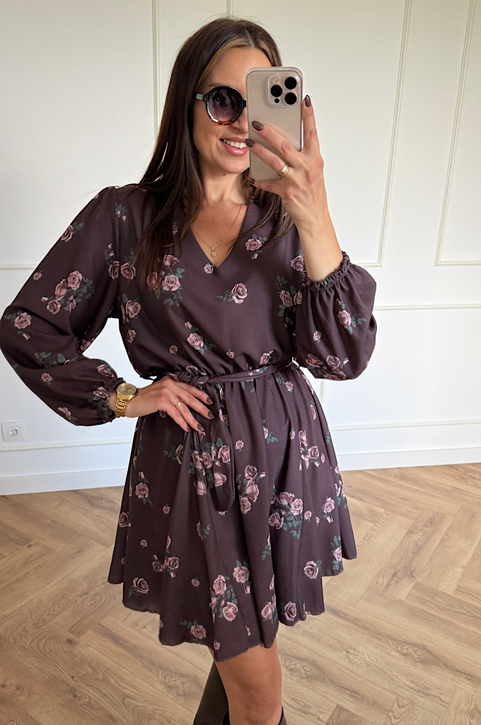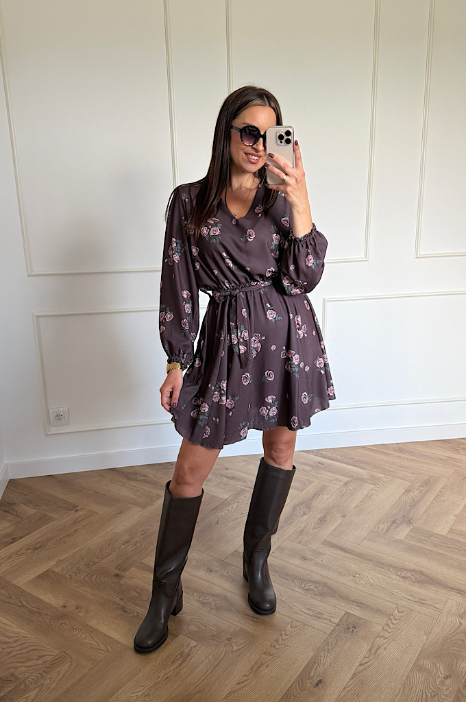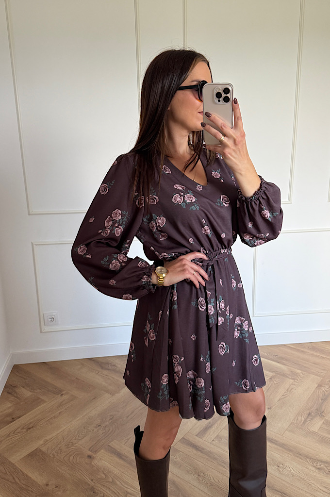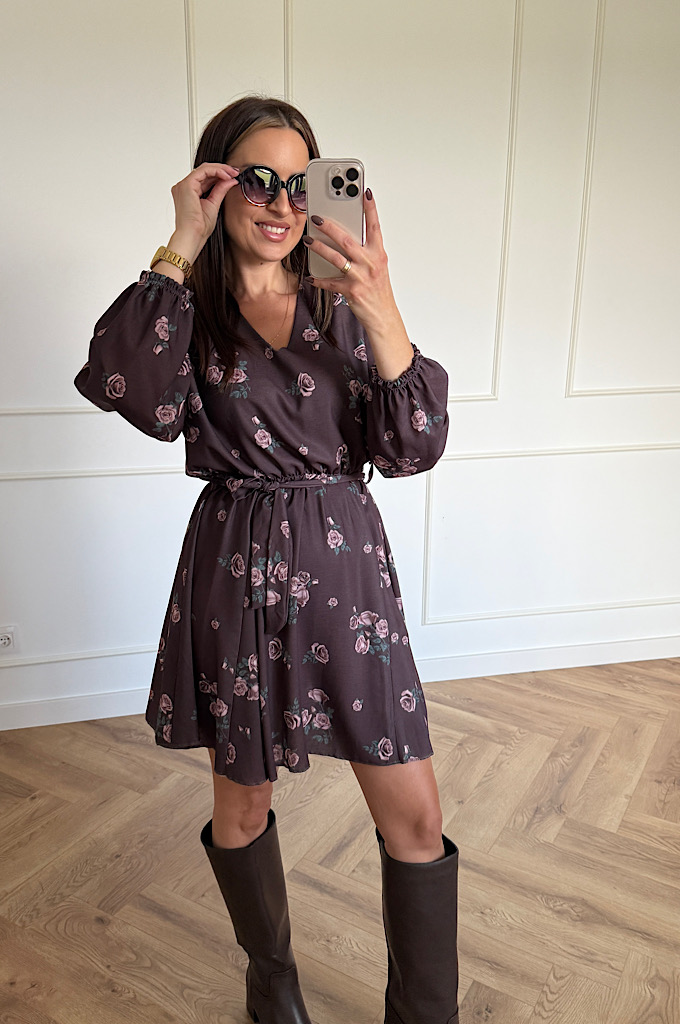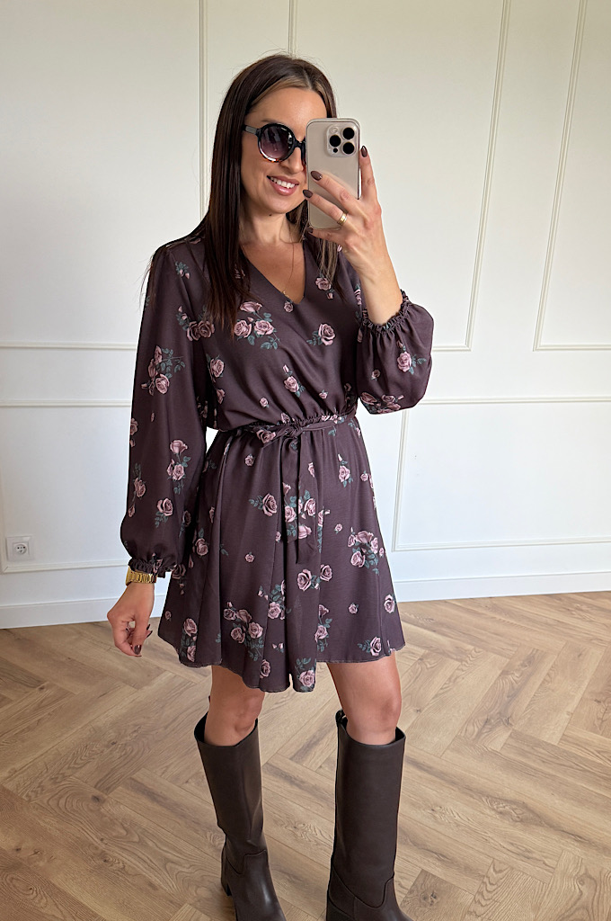 Sukienka w rozmiarze uniwersalnym. Świetnie się sprawdzi dla kobiet w ciąży. Będzie dobra na wiele rozmiarów od XS do XL. Biust w literę V. W pasie gumka, dodatkowo pasek do związania. Rękawek zakończony gumką.