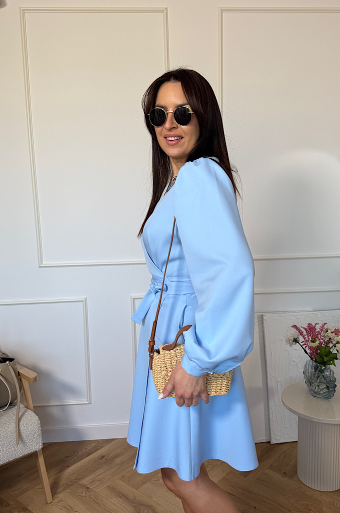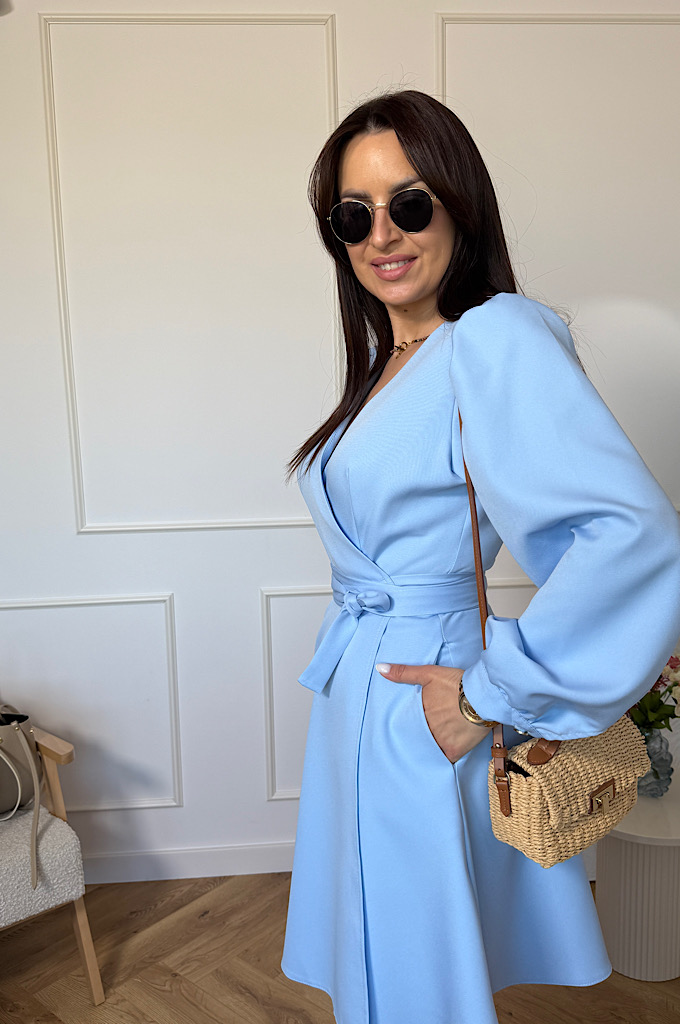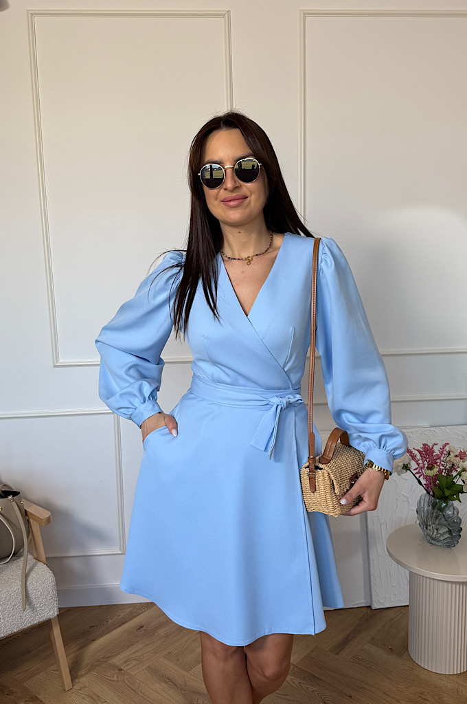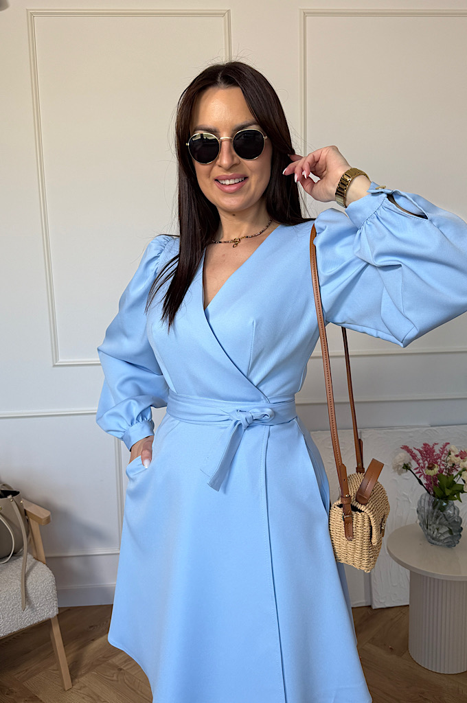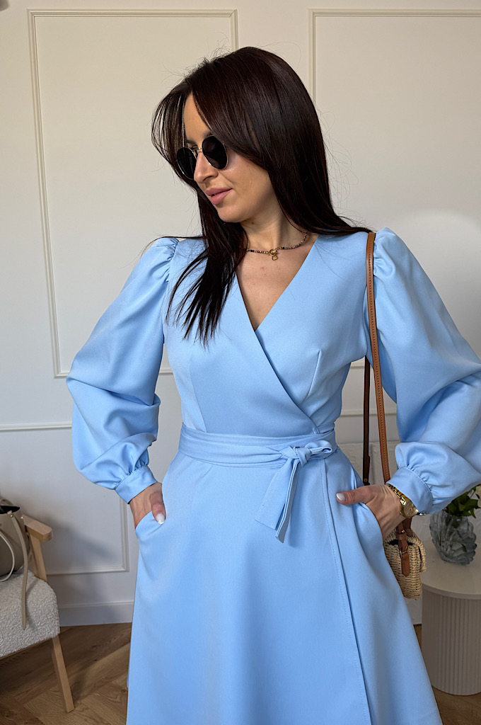 Stylowa sukienka o ponadczasowym kroju kopertowym, która pięknie podkreśla sylwetkę i zapewnia wygodę przez cały dzień. Dekolt w kształcie litery V subtelnie eksponuje biust i optycznie wysmukla szyję, a wiązanie w talii pozwala idealnie dopasować sukienkę do figury. Lekko rozkloszowany dół nadaje lekkości i swobody ruchów, a długi rękaw dodaje elegancji – idealna propozycja zarówno na wesele, przyjęcie, jak i na co dzień.