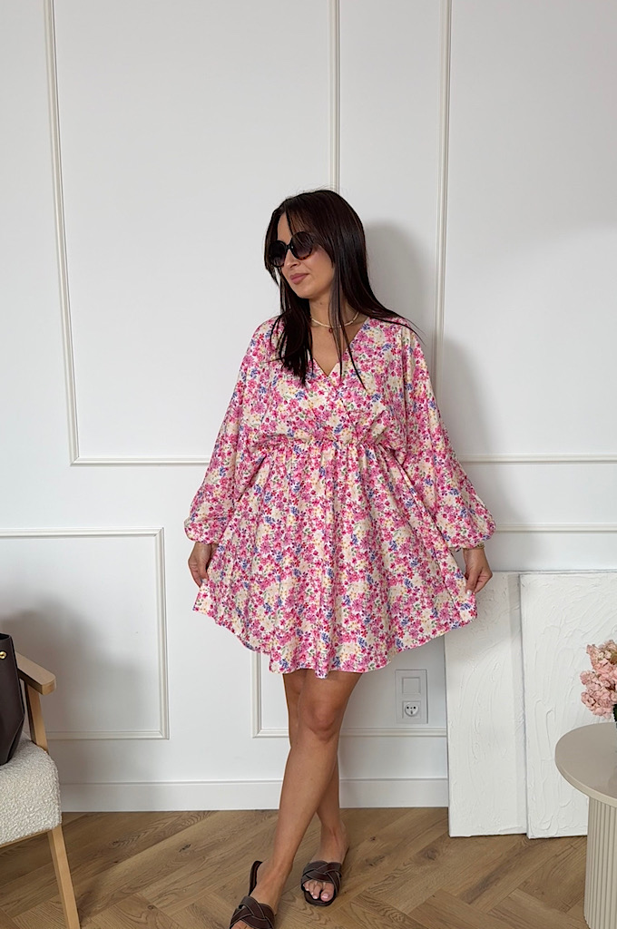 Sukienka Sonia z opuszczonym rękawem kolorowa różowa
