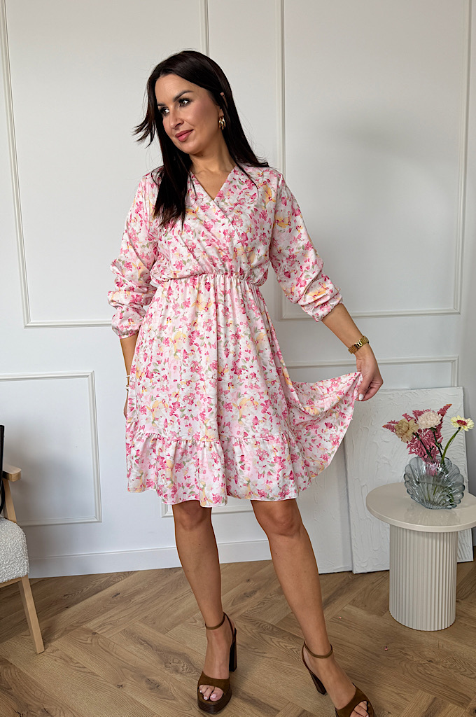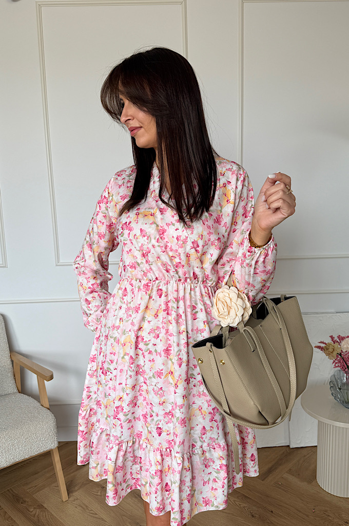 Sukienka Sara kremowa w pastelowe różowe kwiatki