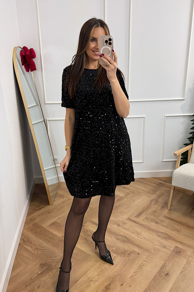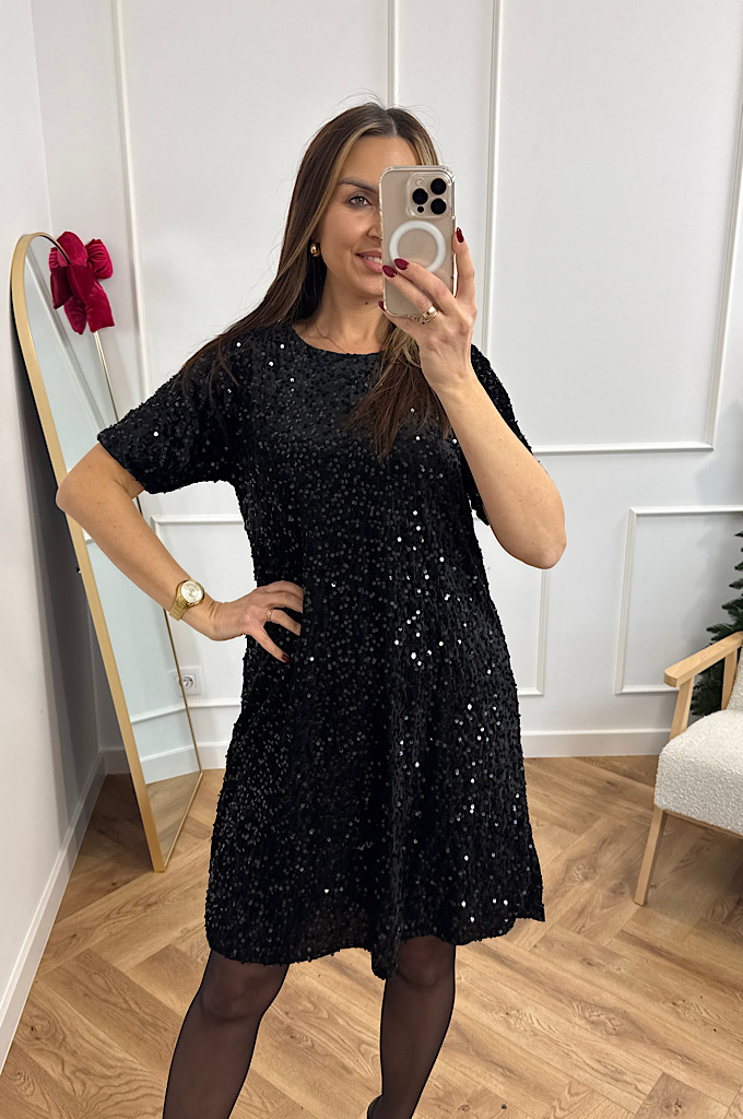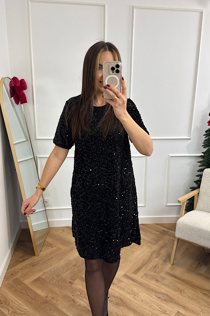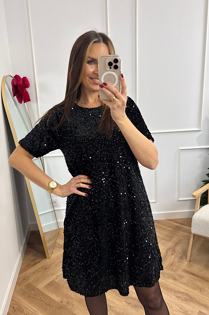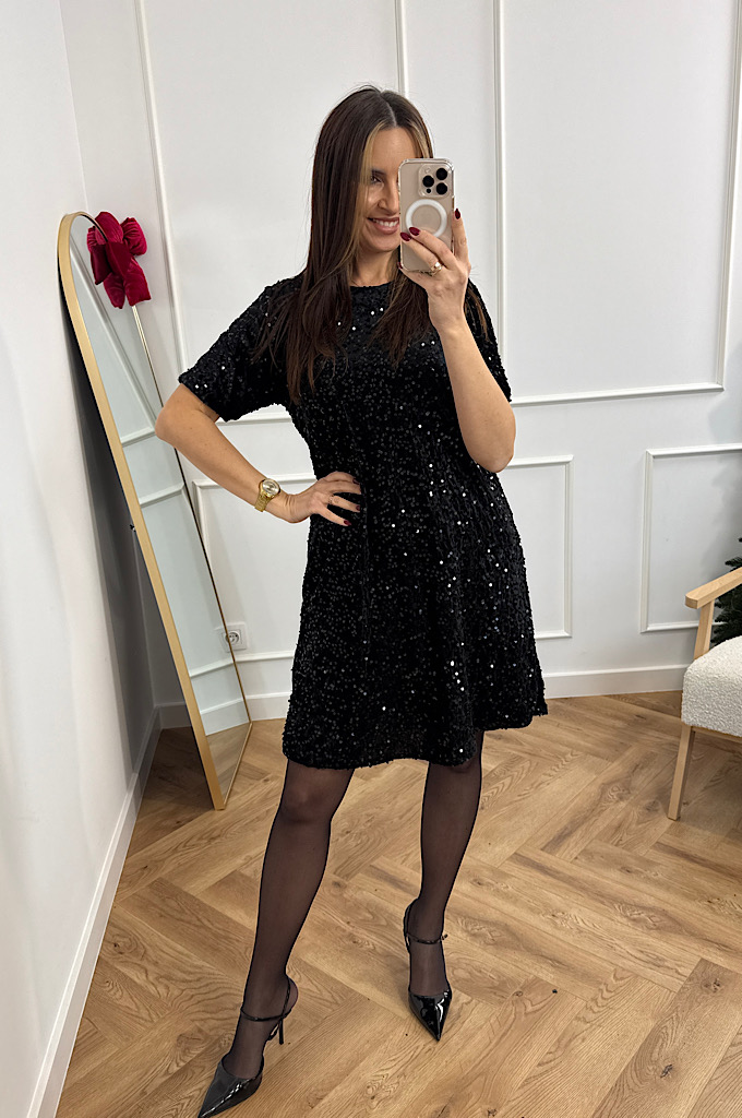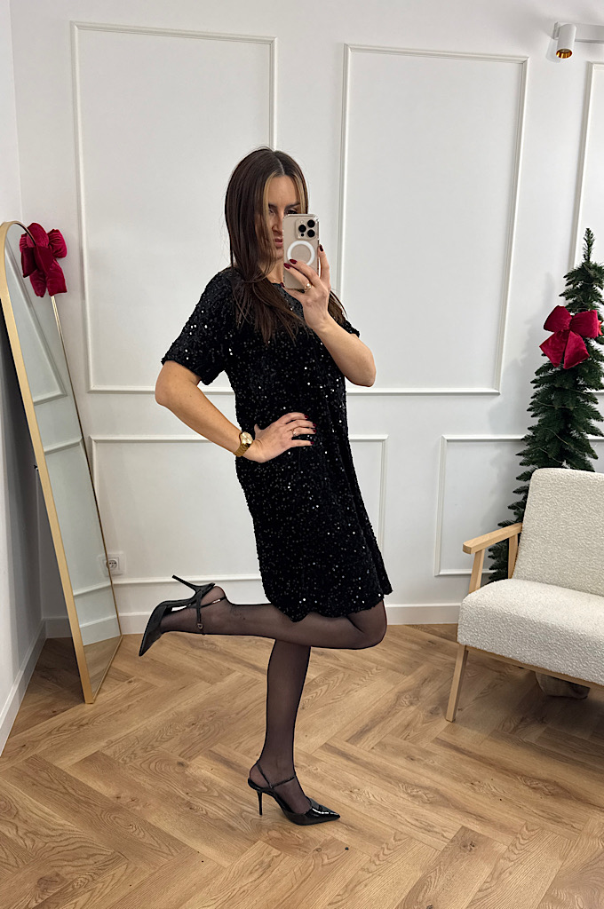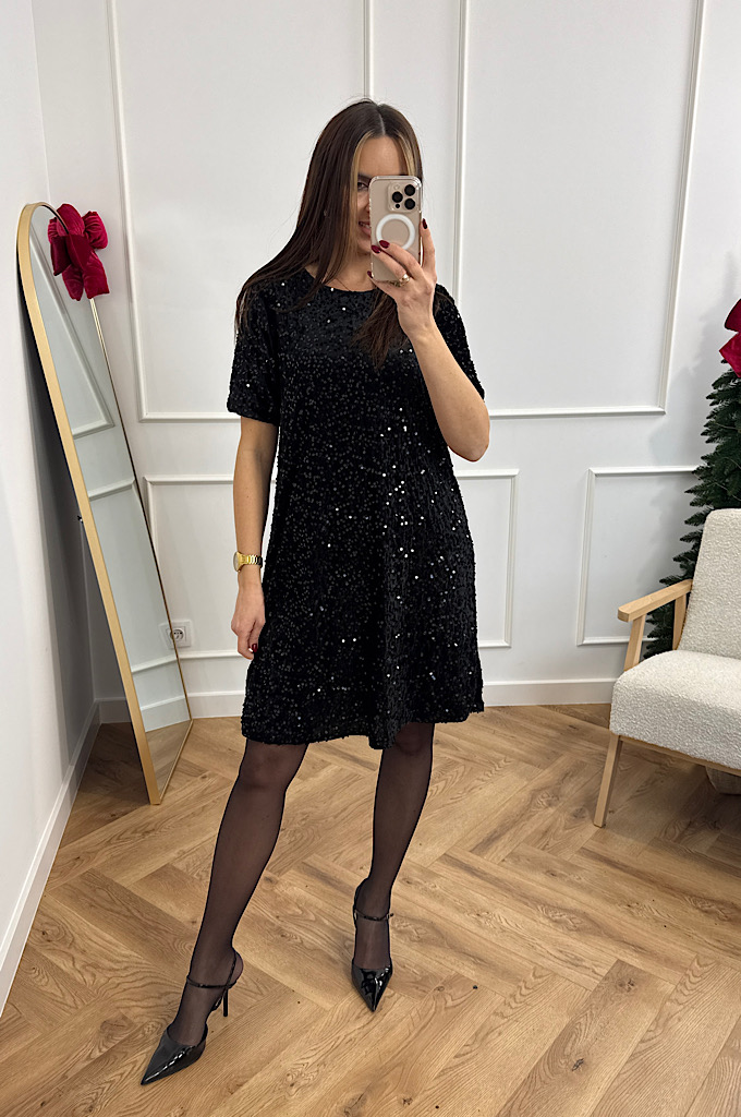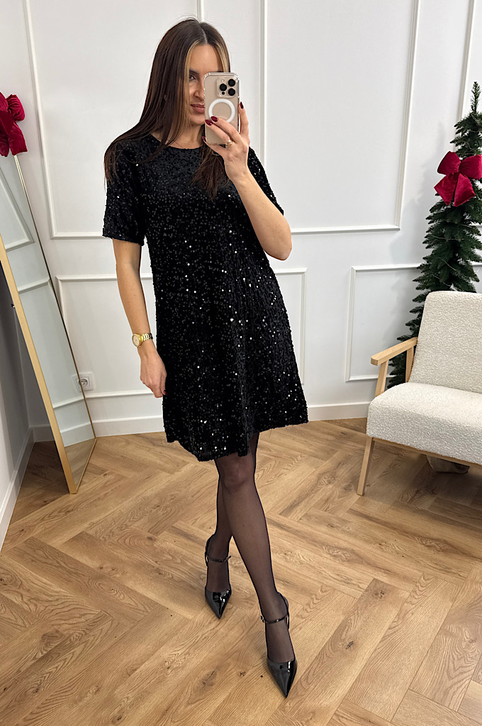 Sukienka welurowa z cekinami czarna w literę A