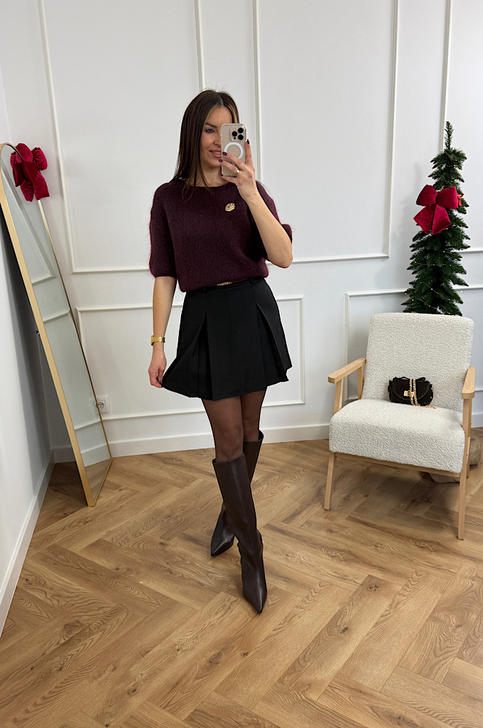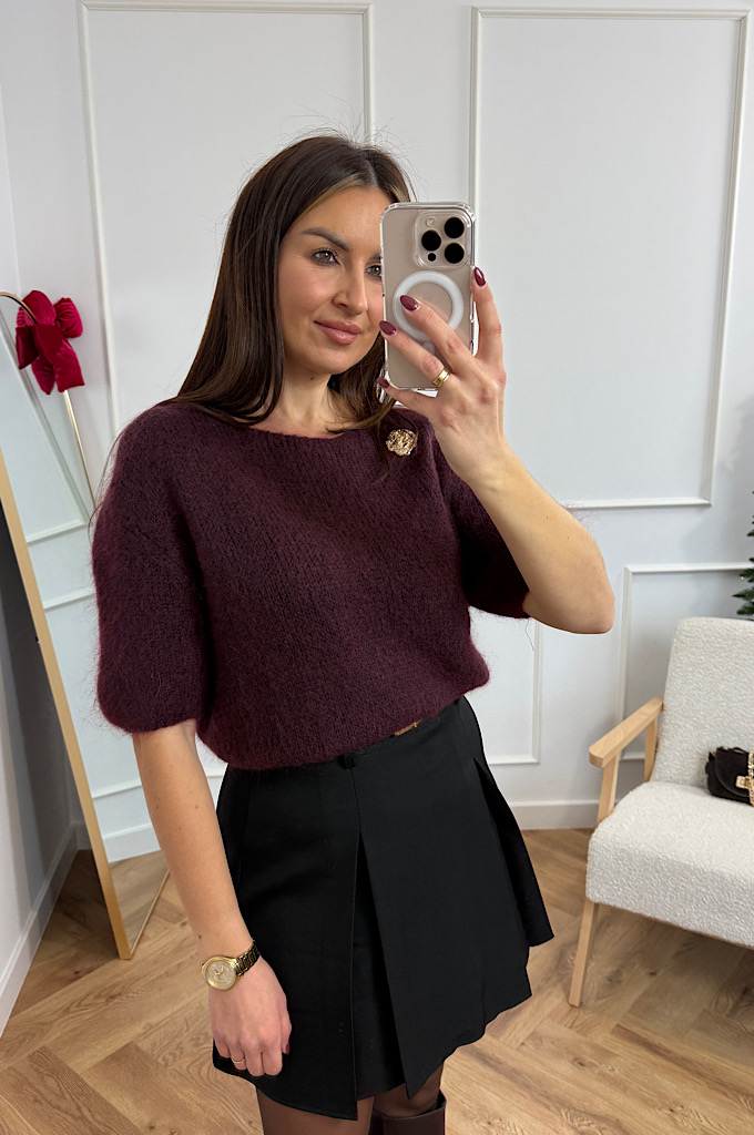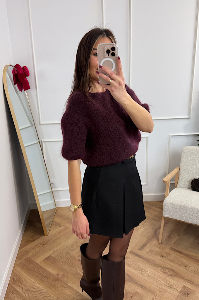 Wykonany z miękkiej, ciepłej tkaniny moher z krótkim rękawem.