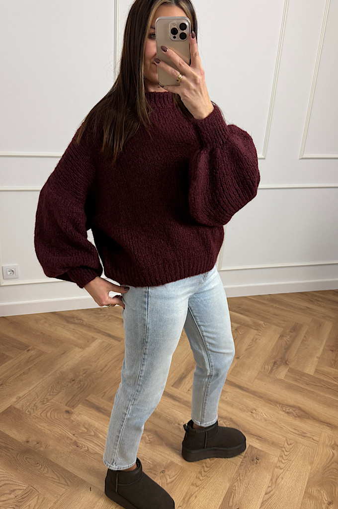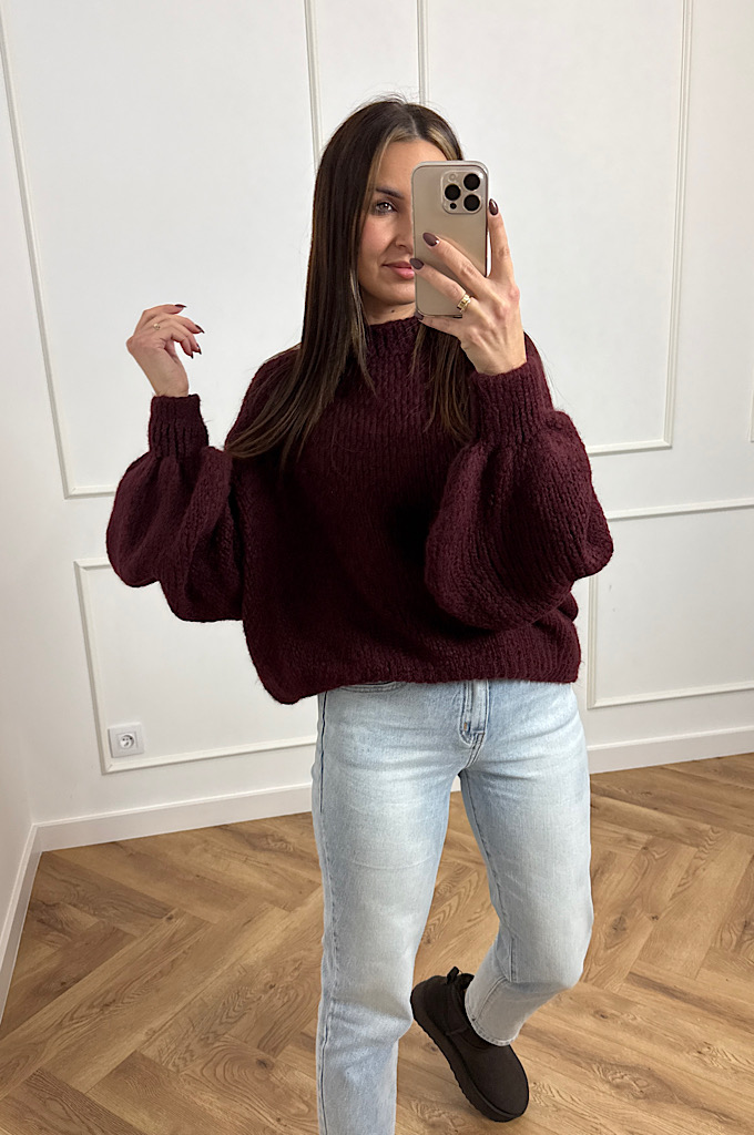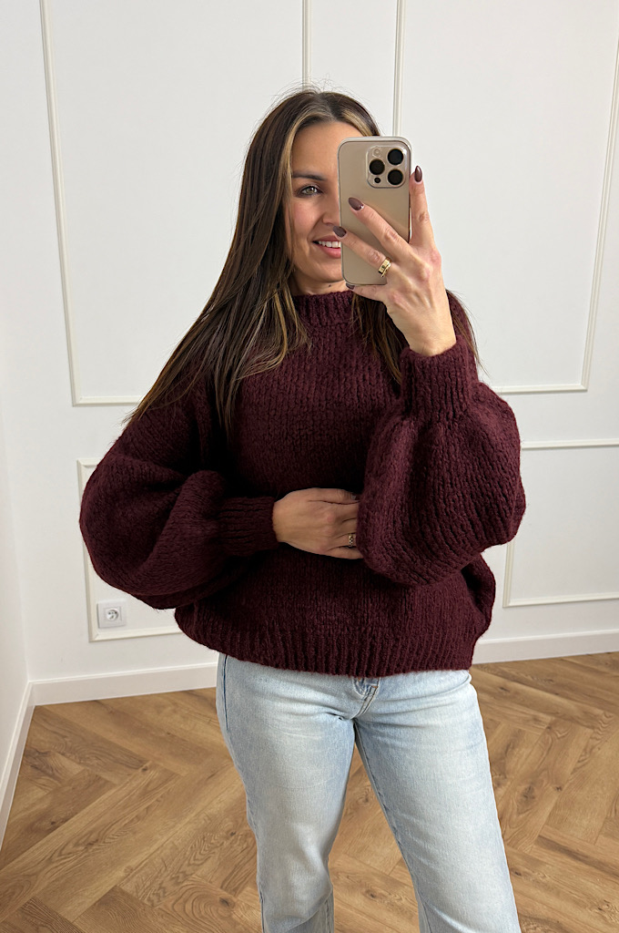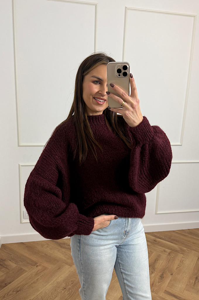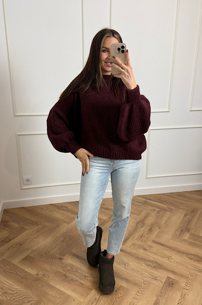 Wykonany z miękkiej, przyjemnej tkaniny, zapewnia komfort noszenia, a  bufiaste rękawy dodają charakteru  każdej stylizacji. Luźny krój, rękaw szeroki, z wełną i moherem to doskonały wybór na chłodniejsze dni, łącząc ciepło, miękkość i elegancję. Moher, pozyskiwany z sierści angorskich kóz, dodaje lekkości, połysku i wyjątkowej delikatności, podczas gdy wełna zapewnia izolację termiczną, co sprawia, że taki sweter jest zarówno ciepły, jak i przyjemny w dotyku.Swetry z tej mieszanki charakteryzują się nie tylko komfortem, ale również trwałością.