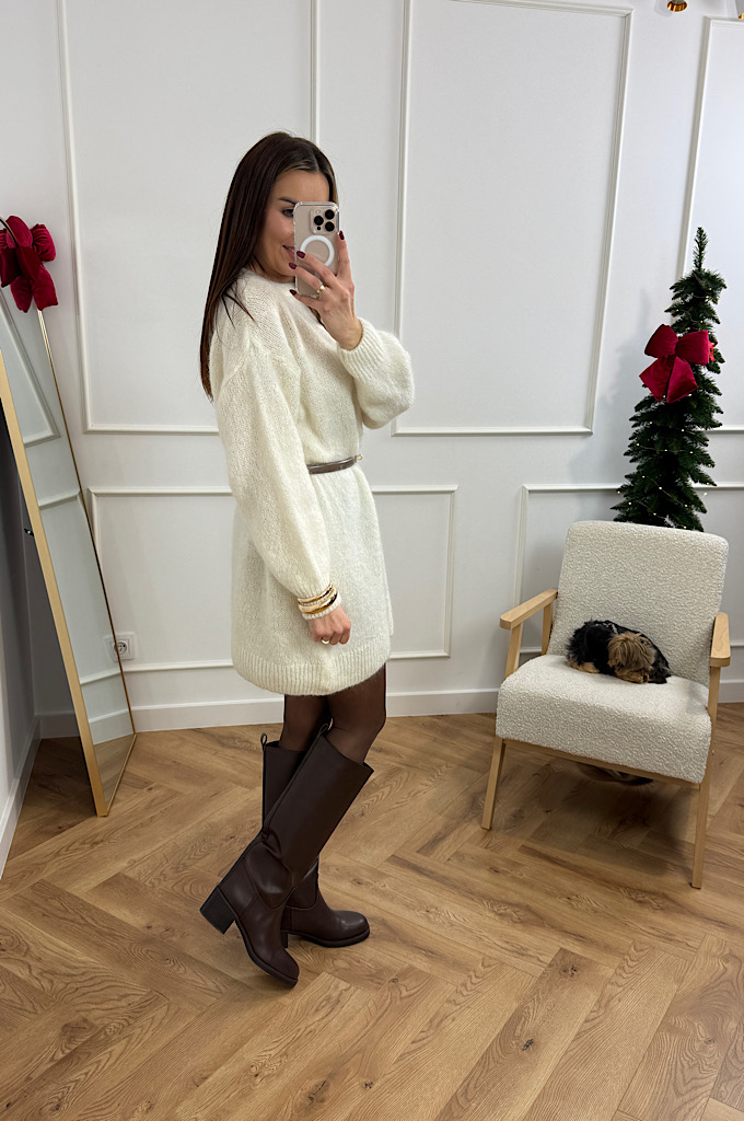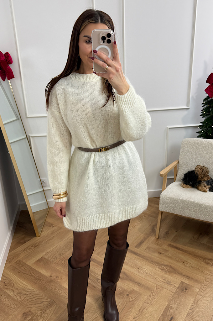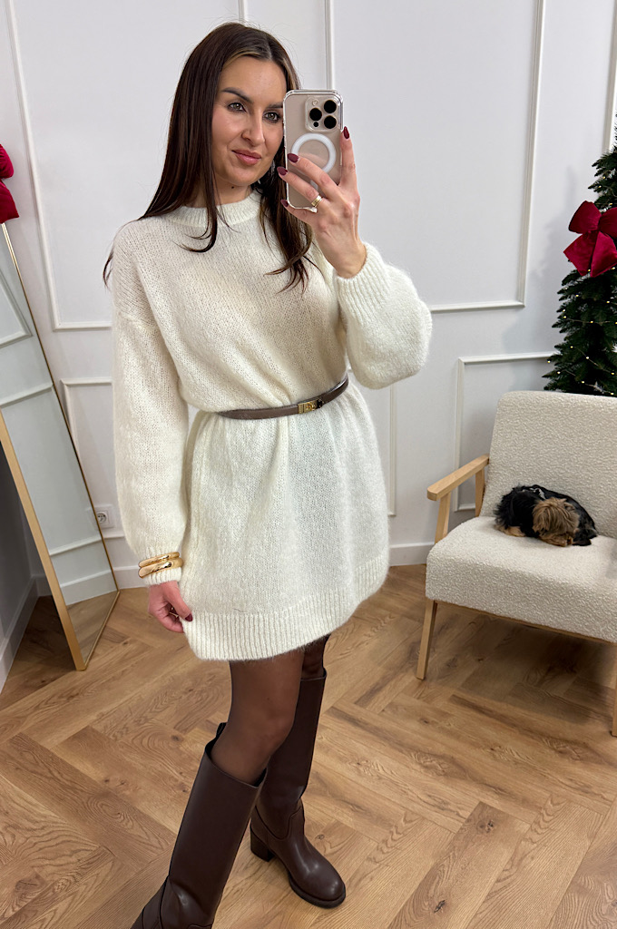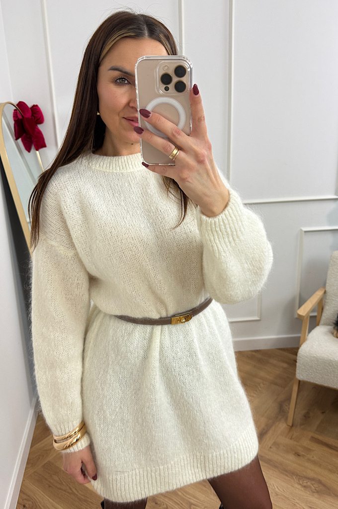 Sweter przedłużany wykonany z miękkiej, naturalnej  tkaniny, zapewnia komfort noszenia, a  bufiaste rękawy dodają charakteru  każdej stylizacji. Luźny krój, rękaw szeroki, z moherem to doskonały wybór na chłodniejsze dni, łącząc ciepło, miękkość i elegancję. Moher, pozyskiwany z sierści angorskich kóz, dodaje lekkości, połysku i wyjątkowej delikatności -jest zarówno ciepły, jak i przyjemny w dotyku.Swetry z tej mieszanki charakteryzują się nie tylko komfortem, ale również trwałością.
