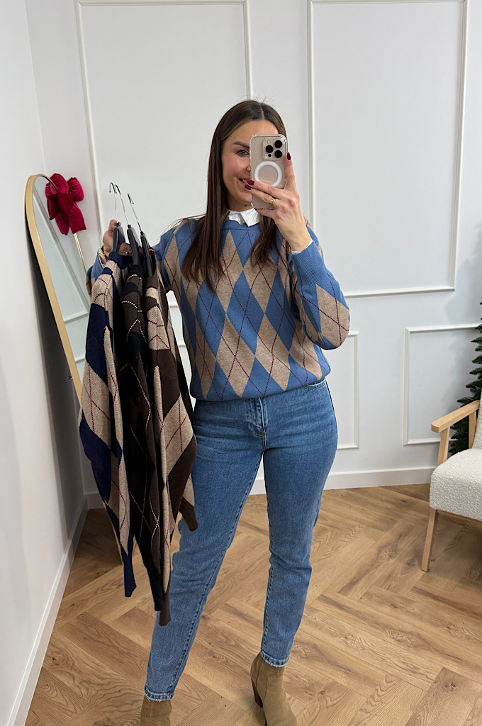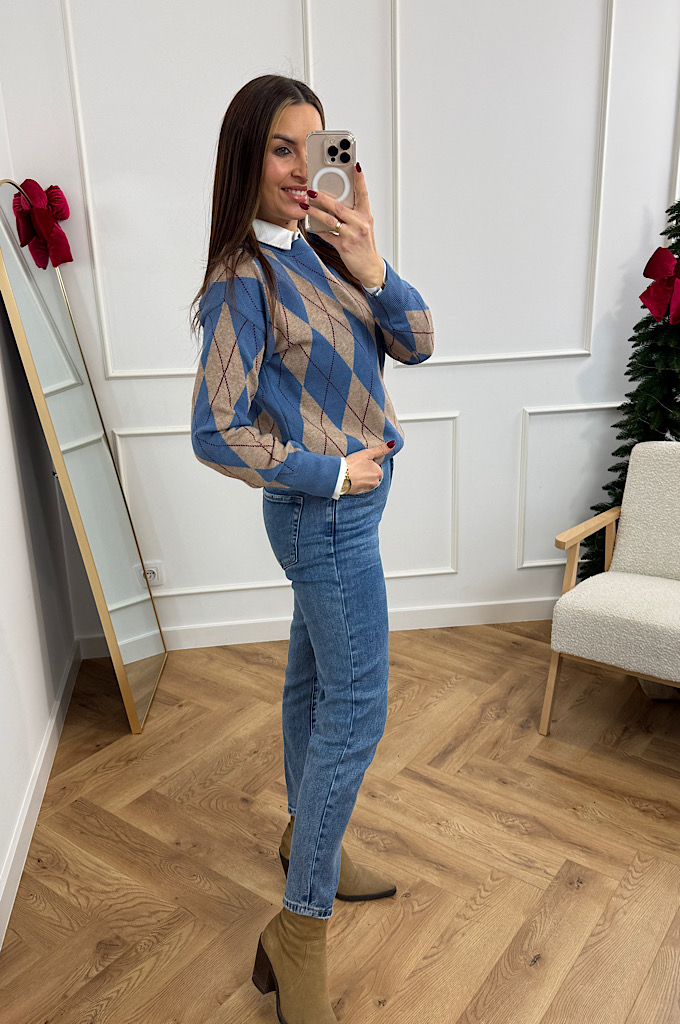 Sweter romby niebieski