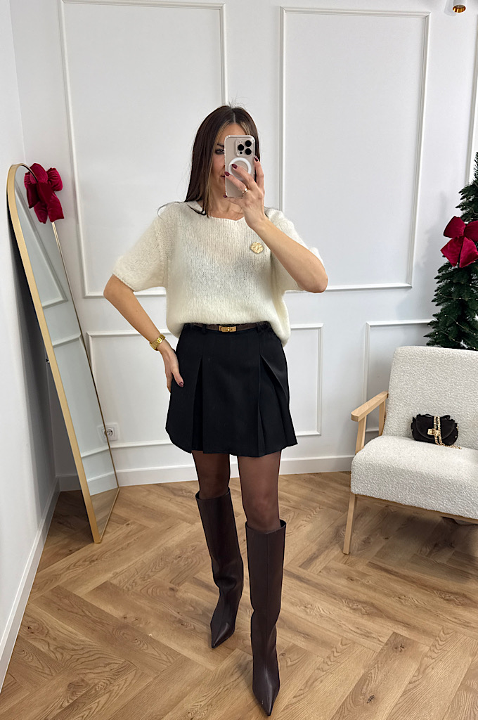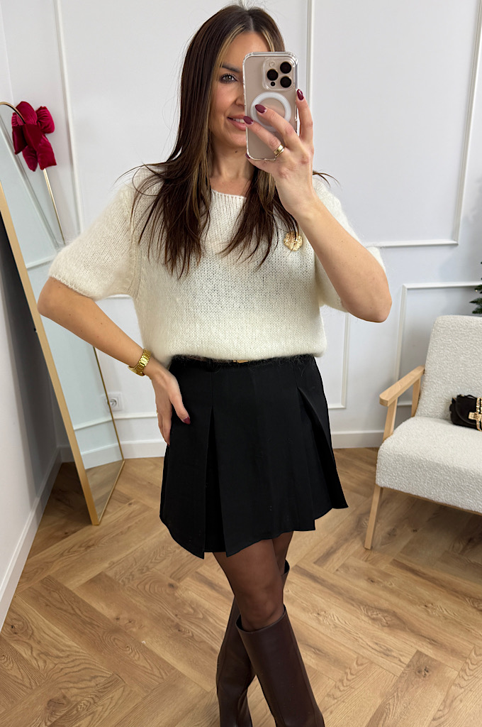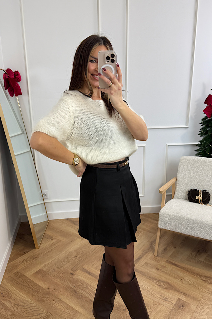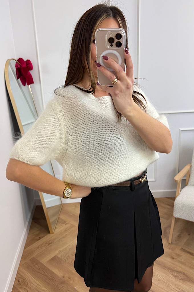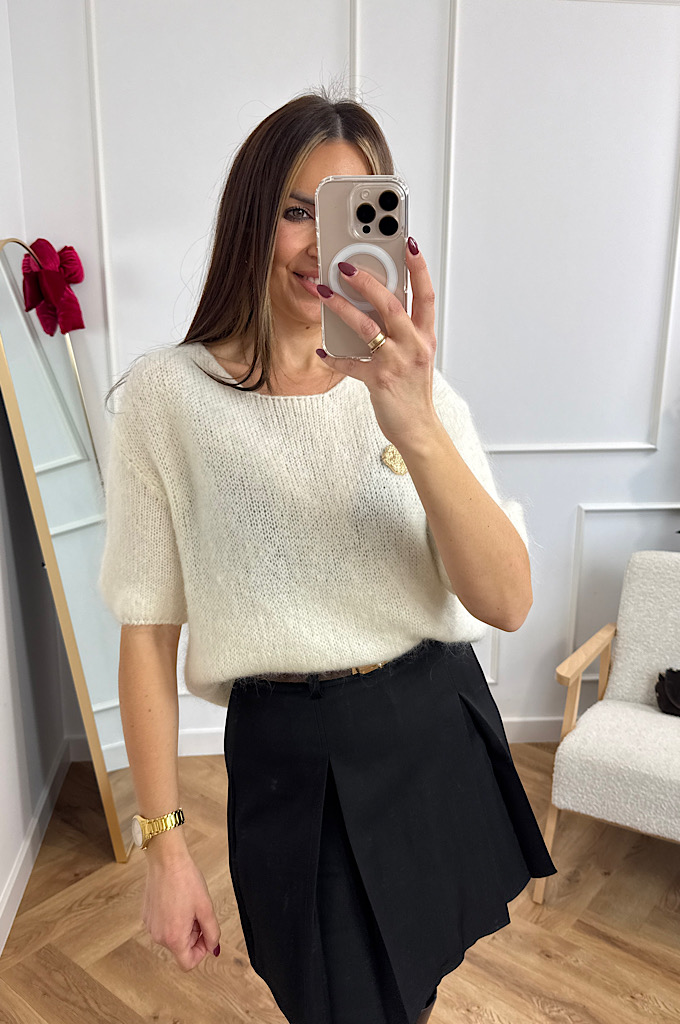 Wykonany z miękkiej, ciepłej tkaniny moher z krótkim rękawem.