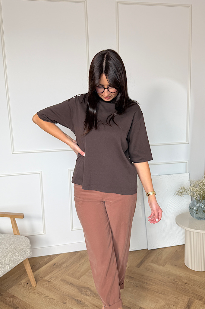 T-shirt oversize gładki czekolada