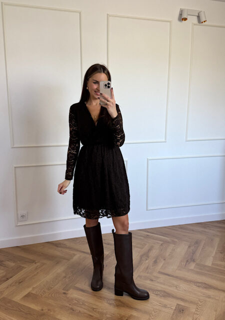 Zjawiskowa sukienka w odcieniu głębokiej czekolady, wykonana z delikatnej koronki, która pięknie podkreśla kobiecość i subtelność stylu. Model posiada wygodną, elastyczną gumkę w pasie, dzięki czemu idealnie dopasowuje się do sylwetki, zapewniając komfort noszenia. Sukienka ma podszewkę, dzięki czemu nie prześwituje i świetnie układa się na ciele. Tabela rozmiarów Uniwersalny Szerokość od pachy do pachy(cm)…